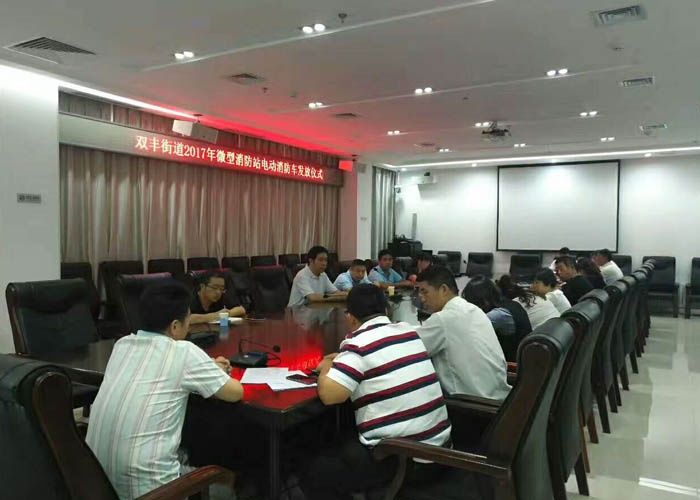 8月4日上午9點半,綠友集團向雙豐街道辦事處交付了一批全電動高壓細水霧式微型消防車。為突出建設平安社區的決心,雙豐街道辦事處舉行了隆重的微型電動消防車發放儀式。