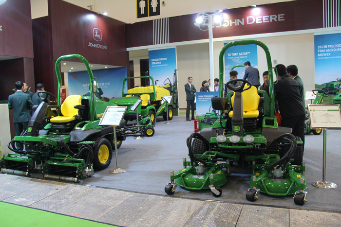 綠友展出了約翰迪爾系列剪草機、球場工作車等設(shè)備,亨特灌溉設(shè)備,GREENMAN四座系列、兩座系列球車,GEENMAN泵站以及打藥機、壓輥機等自產(chǎn)設(shè)備。
