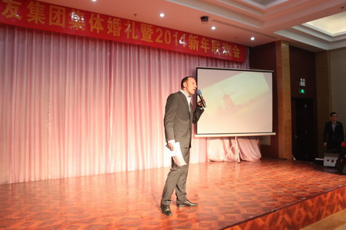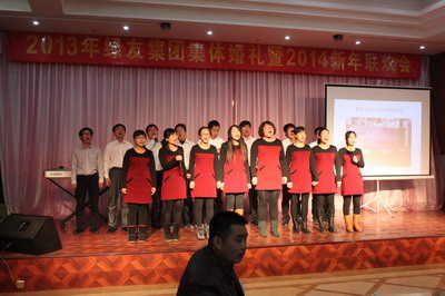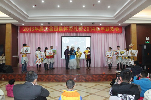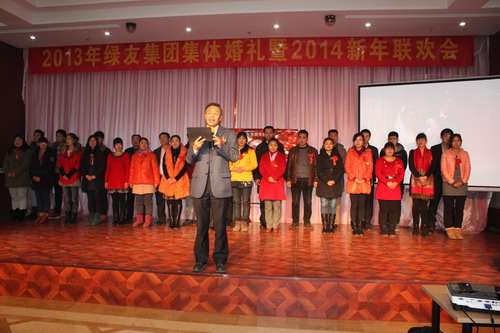 12月29日,“2013年綠友集團(tuán)集體婚禮暨2014年元旦聯(lián)歡會(huì)”在總部所在地附近的德濟(jì)緣酒店舉辦,總部人員和北京綠友園林、北京工廠的全體人員參加了活動(dòng);在李敏總裁的關(guān)心下,會(huì)務(wù)組人員還特別邀請了8名退休員工前來參加活動(dòng)。