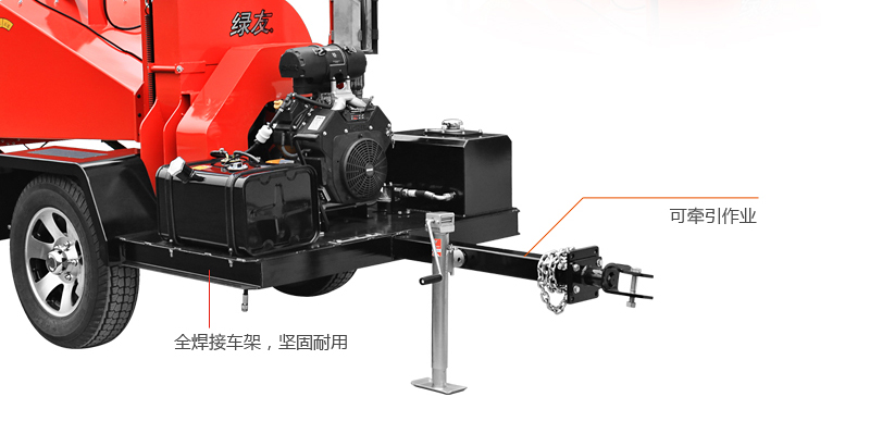 綠友粉碎機配備科勒25hp動力,全自動液壓進料系統,可根據進料樹枝的大小自動調節進料。經特殊處理的切屑刀片,結實耐用并可多次修磨,降低使用成本。機器性能穩固,操作修理簡便。