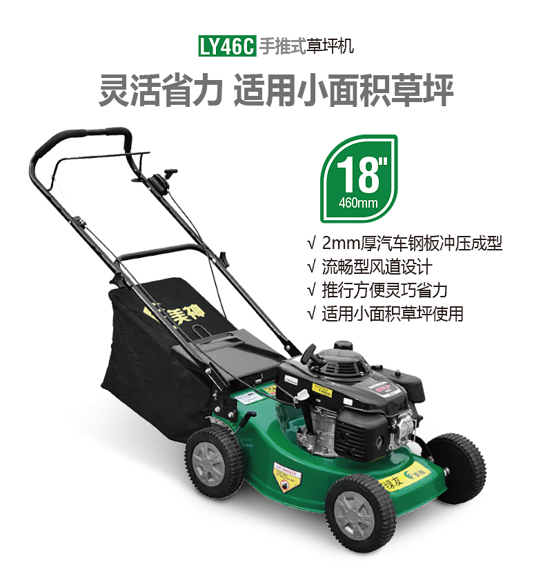 18寸草坪修剪機(jī),適合小面積草坪的修剪作業(yè):如社區(qū),單位,學(xué)校,廣場(chǎng)等場(chǎng)所。