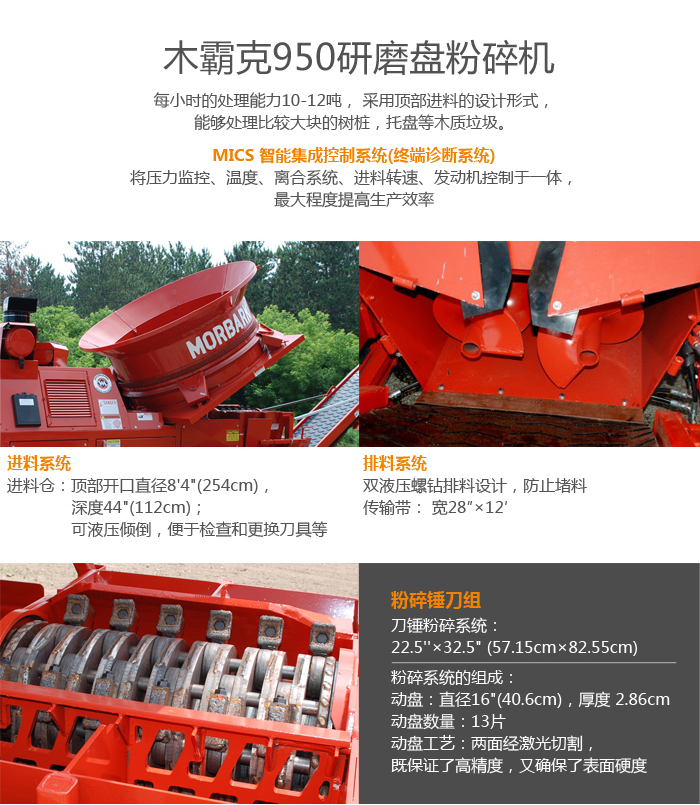 950立式粉碎機,每小時的處理能力10-12噸, 采用頂部進料的設計形式,能夠處理比較大塊的樹樁,托盤等木質(zhì)垃圾。